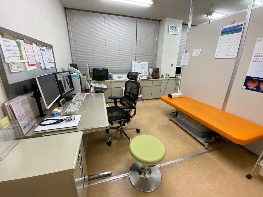 診察室:電子カルテシステム、画像ファイリングシステム(PACS)を使用しております。